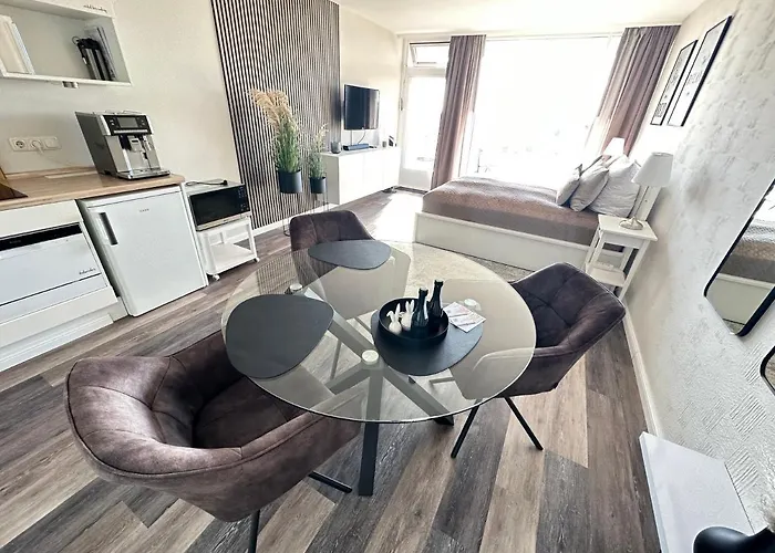 The 35 m^2 Timmendomizil - Schone Ferienwohnung In Bester Lage - Sonnenseite is a 10-minute ride from Seeschlosschen Golf Club and provides spa facilities such as a sauna. The apartment provides parking for guests who travel by car, along with general amenities like a lift, a snack and drink vending machine.